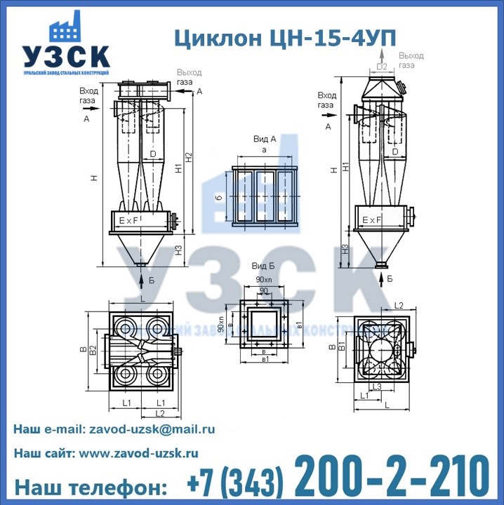 Завод «УЗСК» в Петропавловске предлагает большой выбор циклонов ЦН-15-800×4УП и прочих устройств, полностью укомплектованных и готовых к эксплуатации. Мы гарантируем соответствие оборудования всем требованиям ГОСТ и ТУ, износостойкость и высокую производительность предлагаемого оборудования. Уральский Завод Стальных Конструкций изготавливает и продает надежное, эффективное и производительное оборудование, имеющее длительную гарантию и большой эксплуатационный ресурс. Если требуется изготовить циклон нестандартных размеров, то такой вариант выполнения заказа тоже предусмотрен, так как предприятие имеет собственные производственные площади и надежных поставщиков. На все поставляемое или производимое оборудование имеются чертежи и прочая техническая документация. Заказать и купить циклоны или прочее оборудование высокого качества и по доступной цене можно через наш сайт или по указанному в разделе «Контакты» телефону.