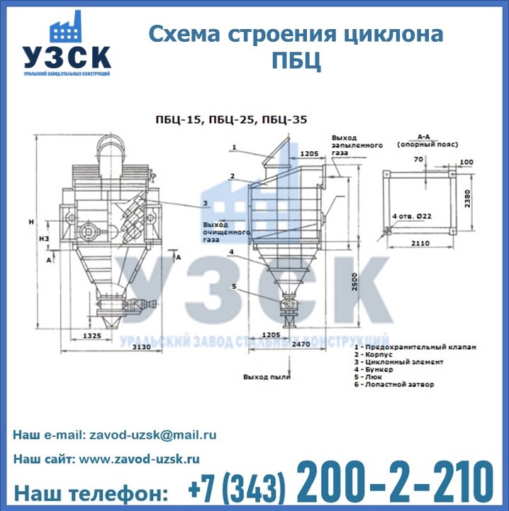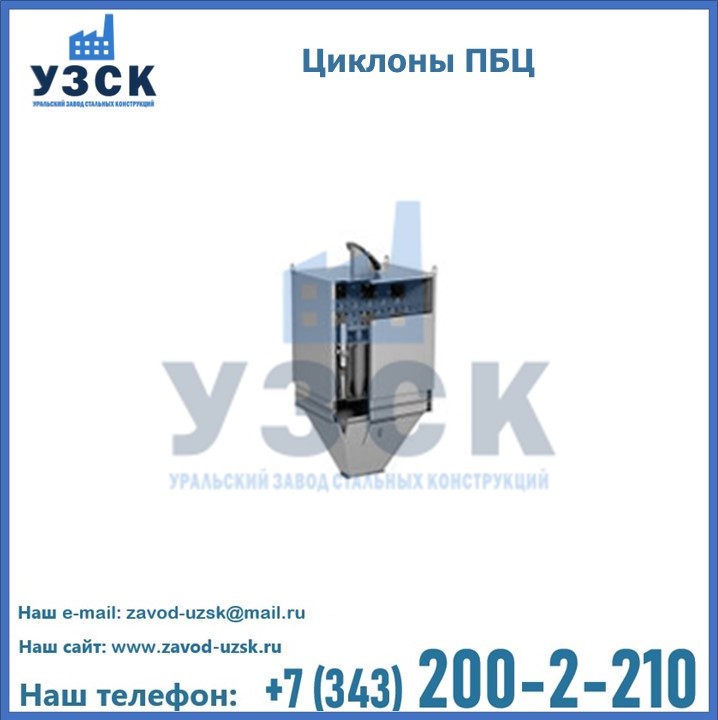 Завод «УЗСК» в Петропавловске предлагает приобрести циклоны ПБЦ и прочие устройства, полностью укомплектованные и готовые к эксплуатации. Мы гарантируем соответствие оборудования всем требованиям ГОСТ и ТУ, износостойкость и высокую производительность предлагаемого оборудования. Уральский Завод Стальных Конструкций изготавливает и продает надежное, эффективное и производительное оборудование, имеющее длительную гарантию и большой эксплуатационный ресурс. Если требуется изготовить циклон нестандартных размеров, то такой вариант выполнения заказа тоже предусмотрен, так как предприятие имеет собственные производственные площади и надежных поставщиков. На все поставляемое или производимое оборудование имеются чертежи и прочая техническая документация. Заказать и купить циклоны или прочее оборудование высокого качества и по доступной цене можно через наш сайт или по указанному в разделе «Контакты» телефону.