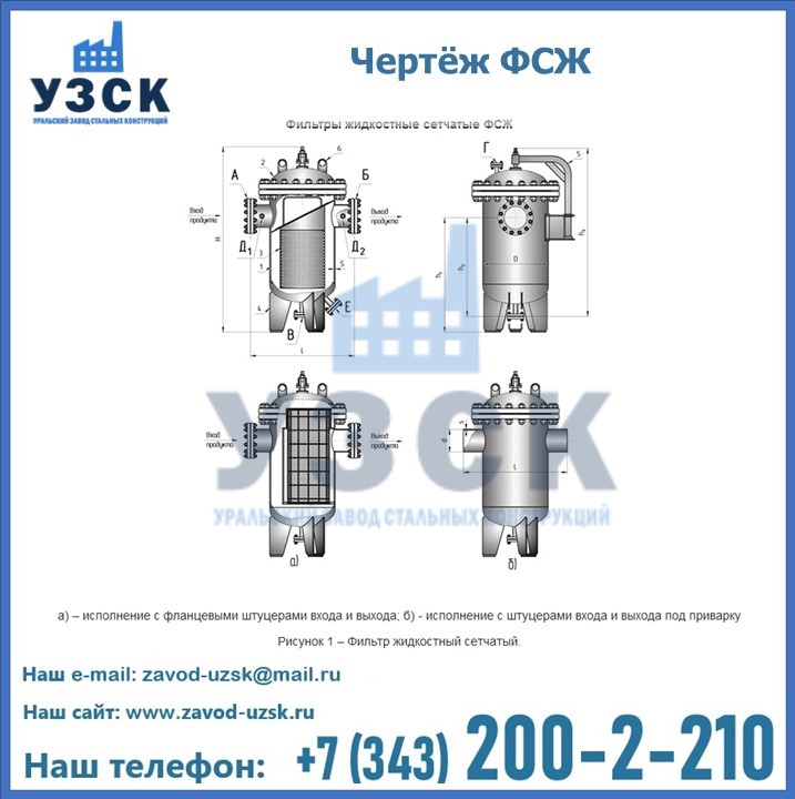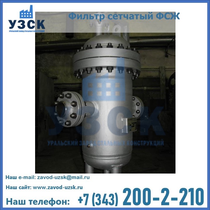 Очистку перекачиваемых жидкостей на предприятиях нефтяной, пищевой, горнорудной, фармацевтической и других отраслей промышленности эффективно выполнять с помощью жидкостного сетчатого фильтра — емкостное оборудование цилиндрической формы со съемной крышкой и элементом фильтрации внутри. Оснащенные им всасывающие линии насосных станций и установок защищены от проникновения твердых частиц в функциональные узлы гидравлической системы. Оборудование служит для перекачивания токсичных, агрессивных и иных эмульсий, суспензий, жидкостей. Купить фильтр сетчатый жидкостный ФСЖ в Петропавловске с гарантией производителя предлагает «Уральский завод стальных конструкций». Мы выполняем проектирование и изготовление ФСЖ по индивидуальным требованиям (климатическая зона, транспортируемая жидкость).