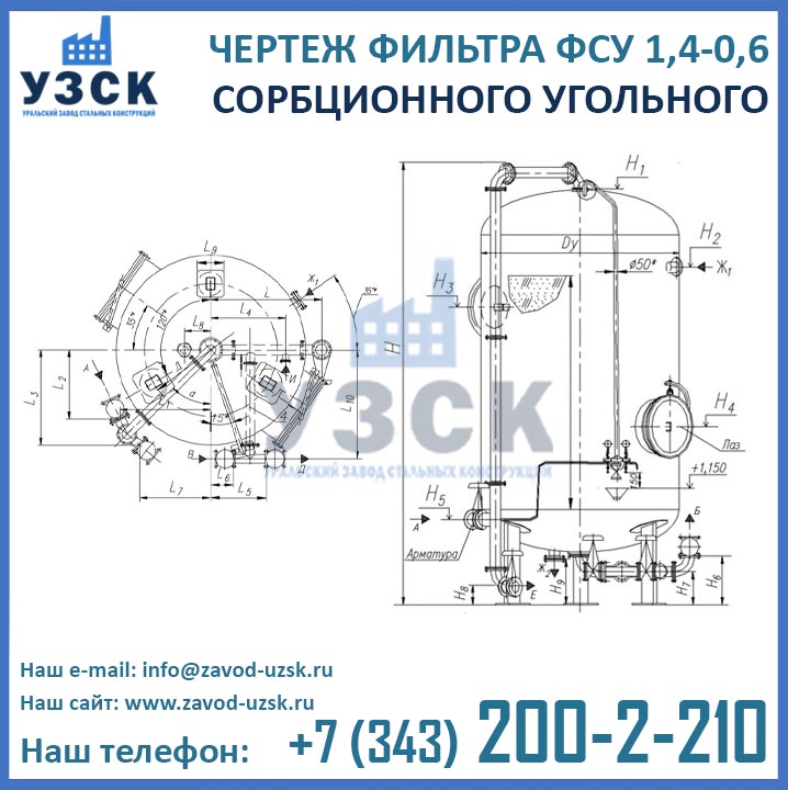 Если вы ищете фильтры ФСУ-1,4-0,6 в Петропавловске от изготовителя, то Вы на правильном пути! Уральский завод стальных конструкций – непосредственный производитель сорбционных фильтров ФСУ, предлагающий самые выгодные цены на ФСУ-1.4-0.6 в Петропавловске. По окончании процесса производства угольные фильтры проходят гидравлические испытания пробным давлением 0,9 МПа на аттестованном гидростенде, находящимся в собственности завода УЗСК. Мы гарантируем высокое качество выпускаемой продукции, и в этом уже убедились ведущие предприятия промышленного сектора России и стран ЕАЭС (см. раздел «Наши клиенты»).