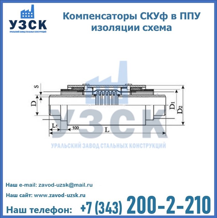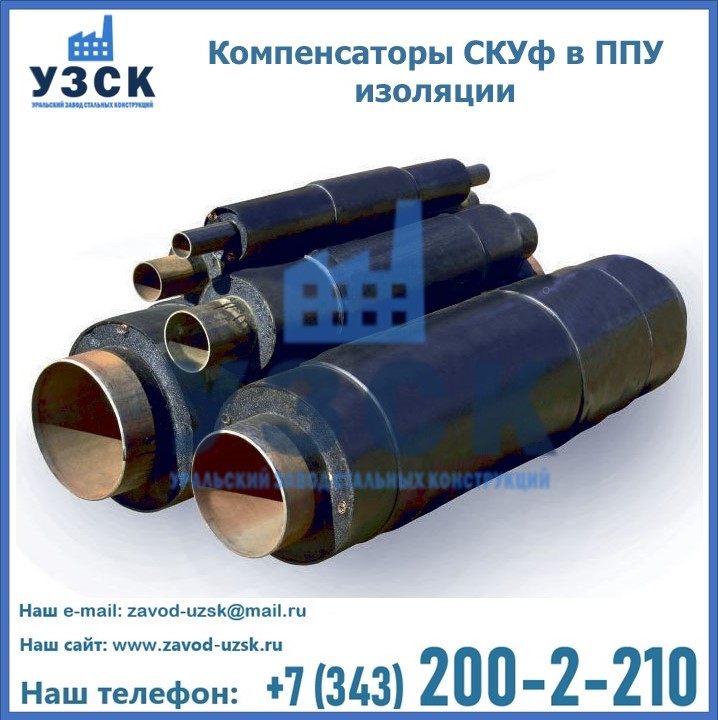 Если трубы для прокладки усилены теплоизоляцией ППУ, то на них допустимо устанавливать только cильфонный компенсатор СКУф в ППУ с такими же размерами теплоизоляционного слоя. На данный момент, такие устройства считаются одними из наиболее надежных, эффективных и долговечных элементов, способных обеспечить бесперебойную работу трубопроводов. На заводе «УЗСК» вы можете купить СКУф ППУ и другие компенсаторы по приемлемой цене, от надежных производителей. УЗСК осуществляет поставки сильфонных компенсаторов СКУ в ППУ любых типоразмеров. Наше предприятие поставляет и производит оборудование, имеющее длительную гарантию и большой эксплуатационный ресурс. Если требуется изготовить нестандартное изделие, то такой вариант выполнения заказа тоже предусмотрен, так как предприятие имеет собственные производственные площади и надежных поставщиков. На все оборудование имеются чертежи и прочая техническая документация. Чтобы заказать сильфонный узел СКУф в ППУ изоляции в Петропавловске необходимо направить запрос через форму онлайн-заказа на сайте или связаться с нашими специалистами по телефонам, указанным в разделе «КОНТАКТЫ .