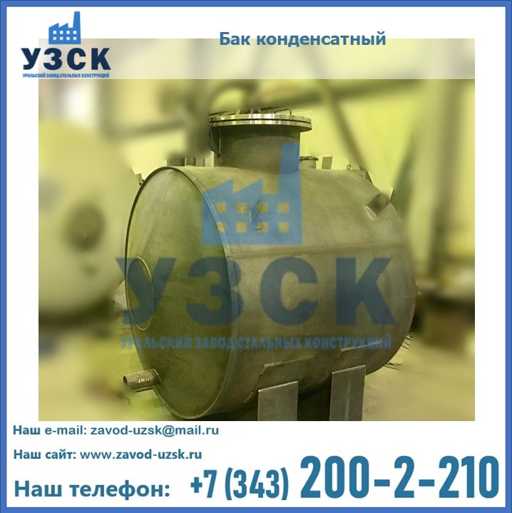 Многие заказчики стараются конденсатные баки купить по выгодной цене в компании «УЗСК» в Петропавловске. Причин несколько. Производитель поставляет емкости с полным комплектом лестниц, площадок обслуживания. Бак после гидравлических испытаний покрывают специальной внутренней и наружной краской, накладывают теплоизоляцию или наваривают крепеж для навески минматов. Условия теплоизоляции согласуются с заказчиком.