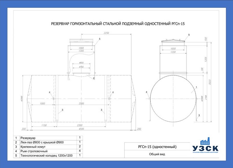 РГСДн-15: горизонтальный резервуар двустенный наземного расположения;